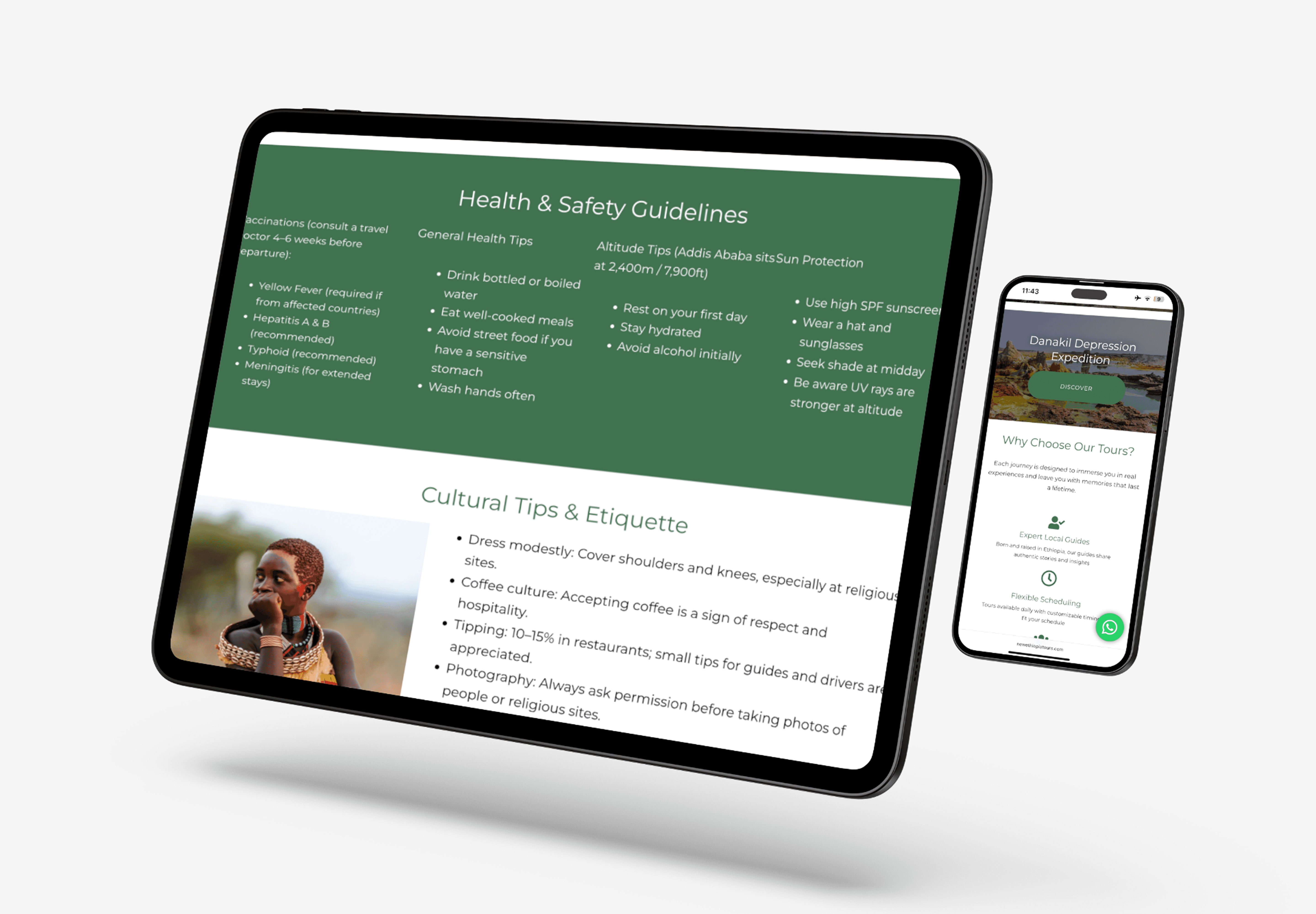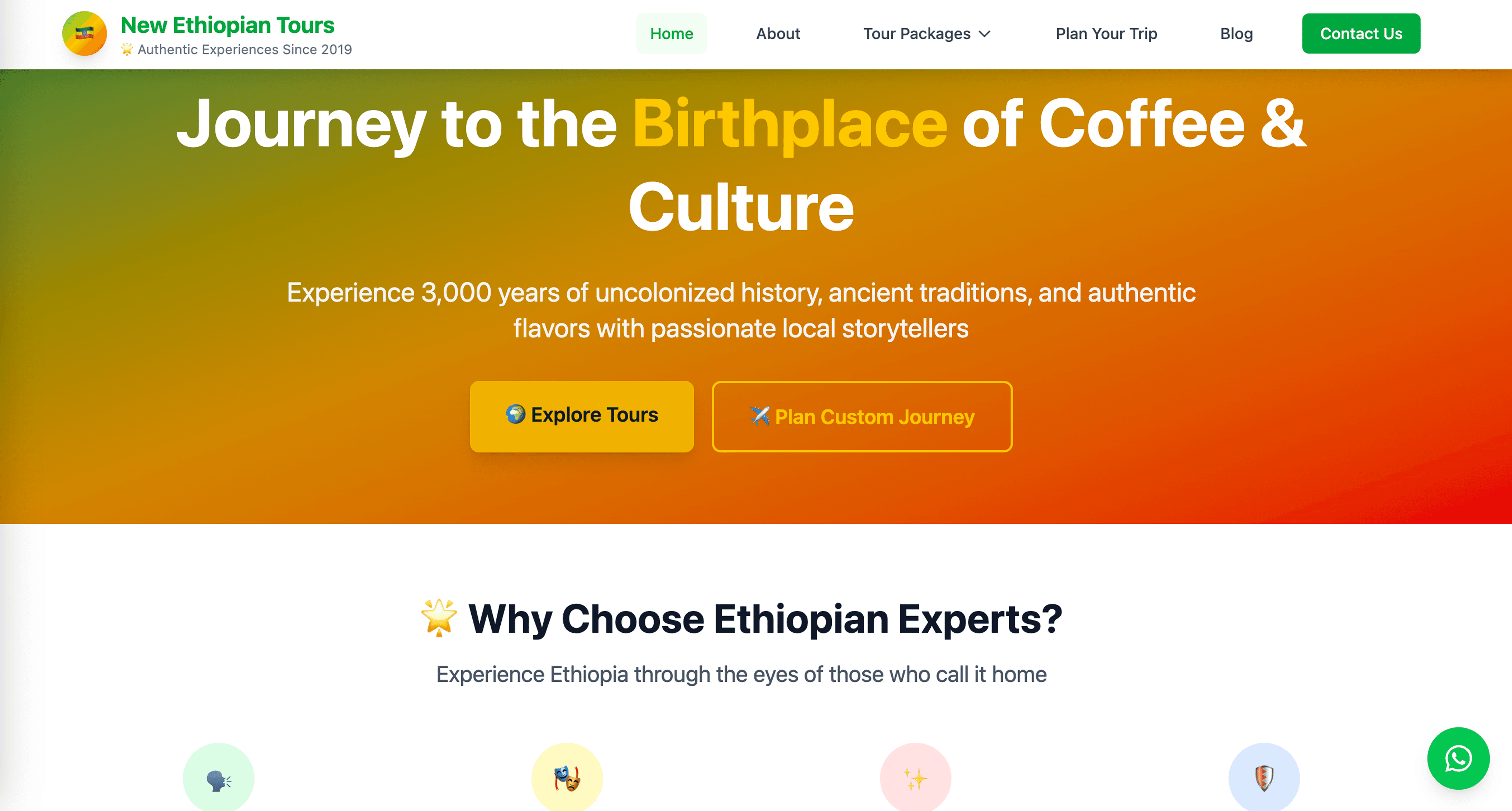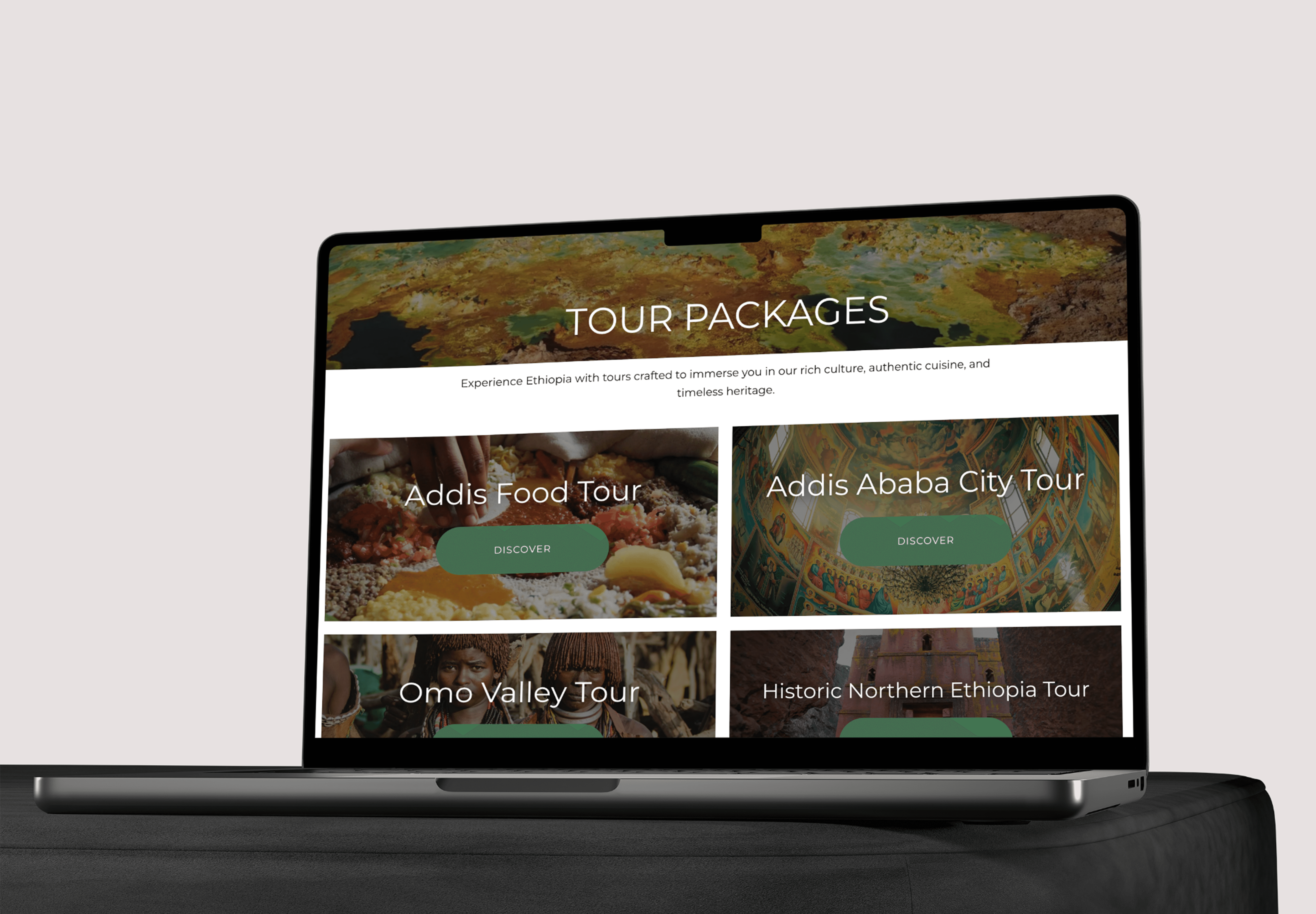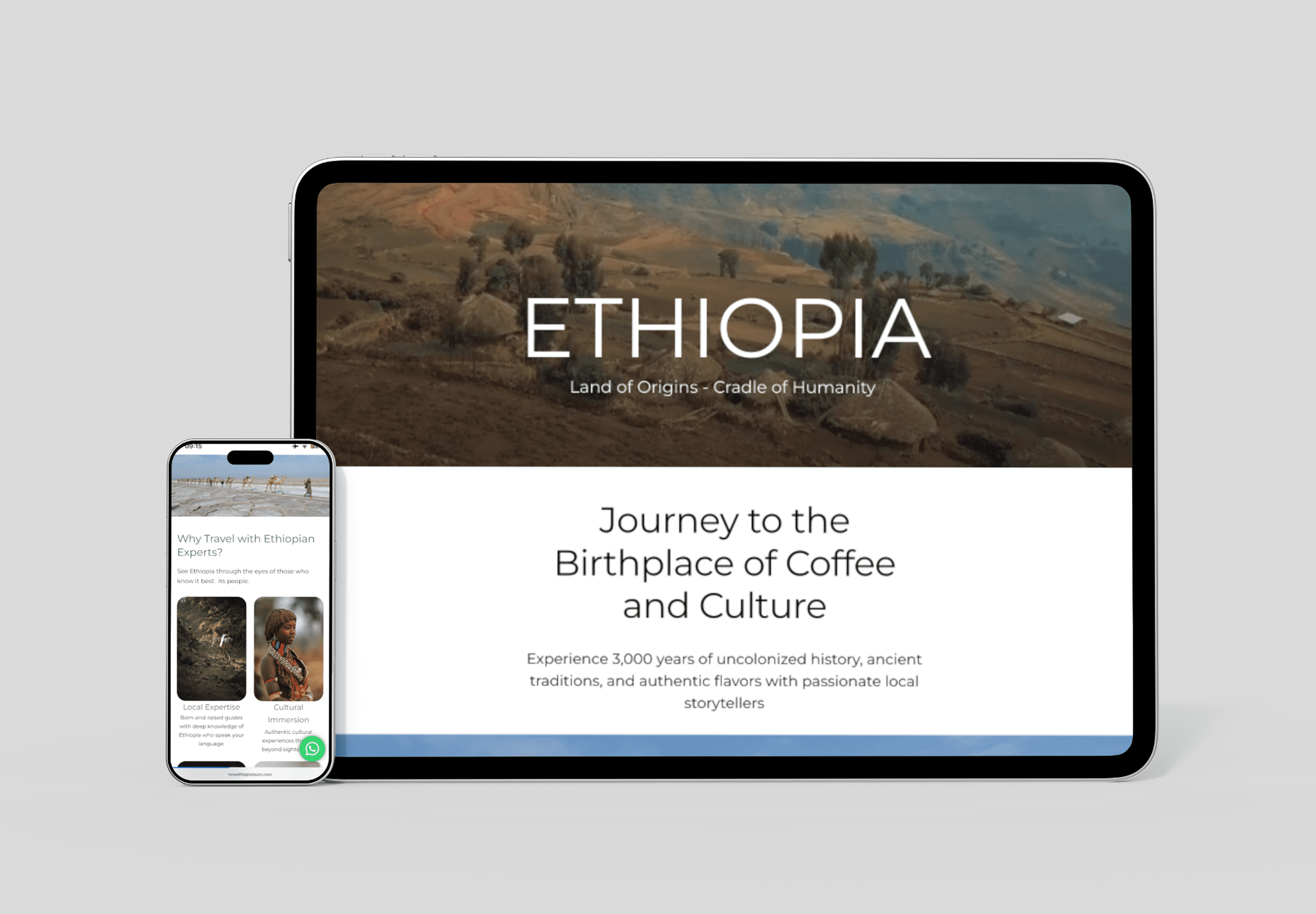 My goal was to redesign key parts of the site so it felt clearer, calmer, and more modern, while also being more photo and content-driven. I wanted the beauty of Ethiopia and the richness of the experiences to take center stage, supported by simple, intentional design rather than competing with it.